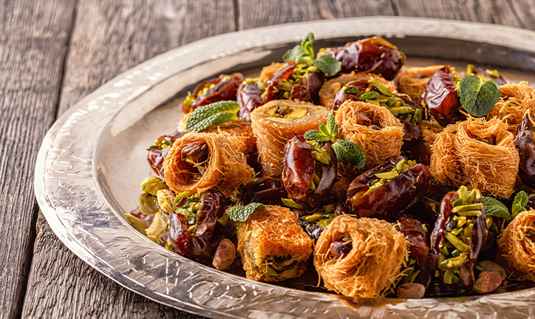 1. Мучные, которые готовят из разных видов теста: дрожжевое, песочное, филло с разнообразной начинкой. К таким сладостям относится баклава, курабье, шакер-курек.